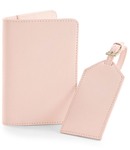 100% leather-look PU. Saffiano fine grain. Soft touch lining. Internal foam padding. Luggage tag with high shine gold metal buckle. Passport/travel card holder. Tear out labels.